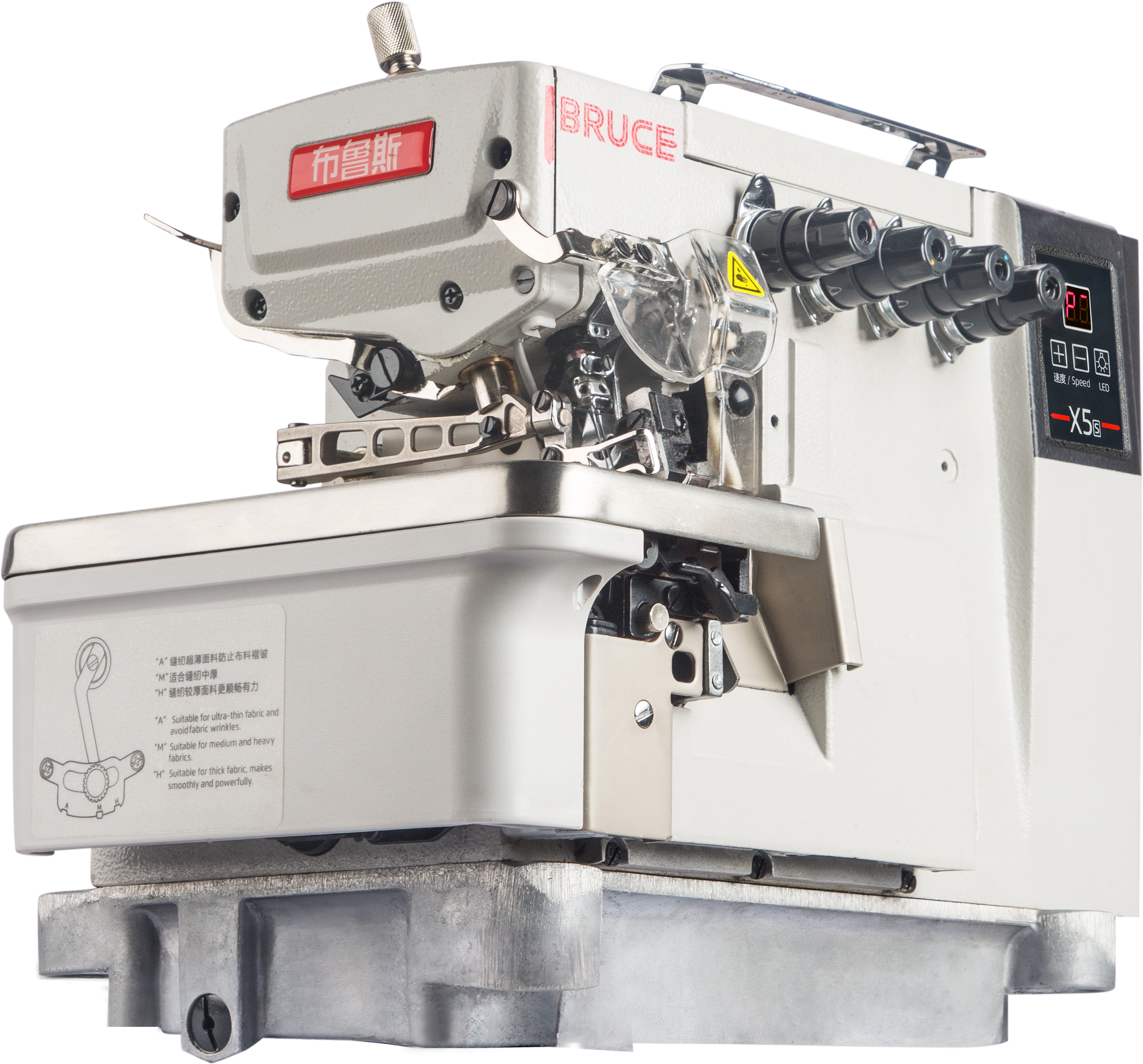 The BRUCE X5S-4 is a high-performance overlock sewing machine designed for speed, flexibility, and clean sewing results. It is well-suited for manufacturers handling varied fabric thicknesses and demanding production schedules.